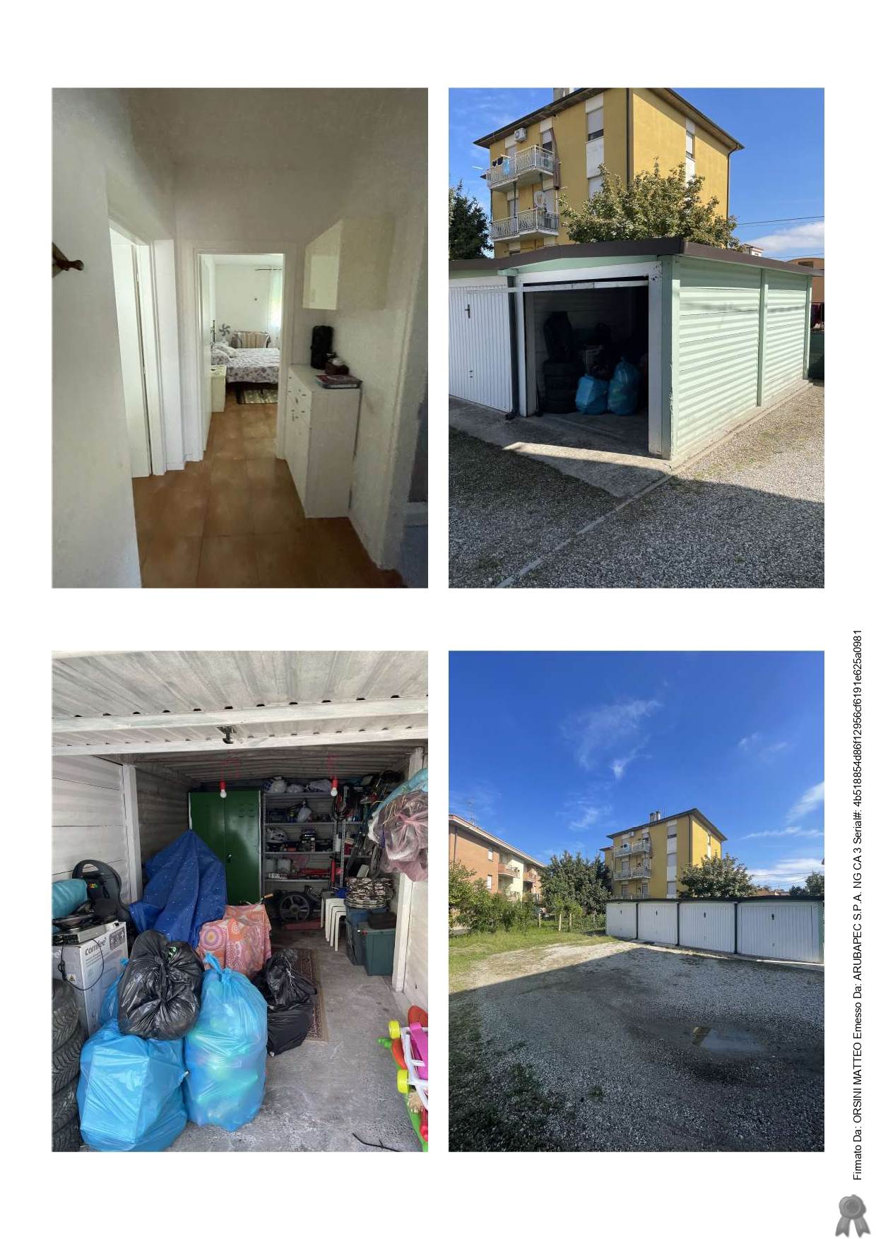 - autorimessa: foglio 90; part. 143; sub 15; piano terra; cat. c/6; cl. 6; cons. 12 mq; rend. € 41,52 – viale della resistenza. l’autorimessa di pertinenza, posta in altro corpo di fabbrica all’interno della corte condominiale, è realizzata in prefabbricati di cemento, pavimento in battuto di cemento, con portone basculante in metallo verniciato.
