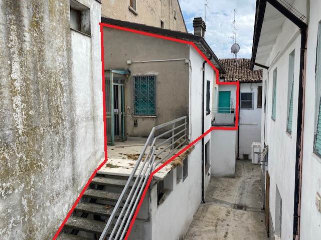 Piena proprieta' di appartamento posto al piano primo di fabbricato condominiale, accessibile da due scale (una esterna di proprieta' esclusiva ed una interna in comune con altra unita' immobiliare), composto da ingresso diretto nel locale pranzo, locale cucina, disimpegno, locale soggiorno, camera da letto, ulteriore corridoio, locale ripostiglio, bagno e due terrazze, oltre ad area cortiliva di proprieta' esclusiva e piccolo ripostiglio posto al piano terreno.