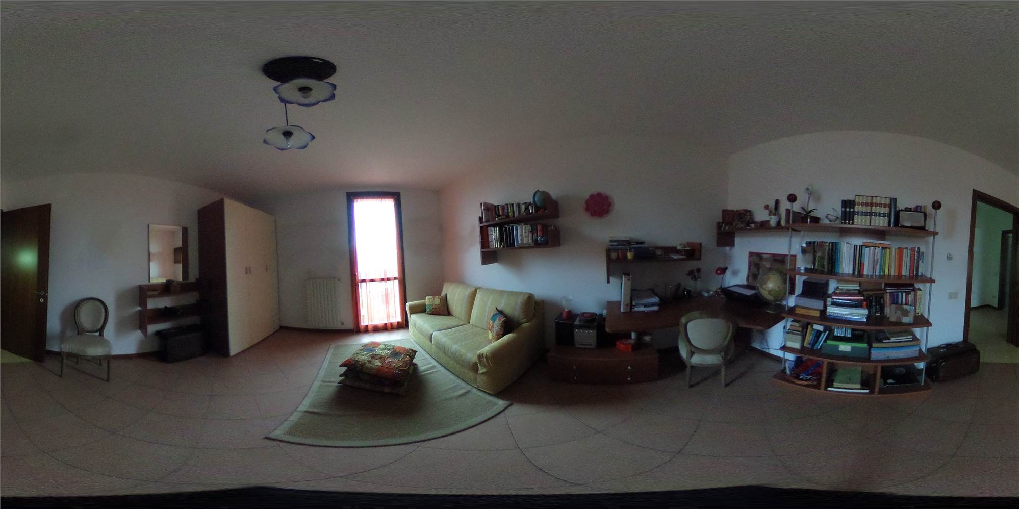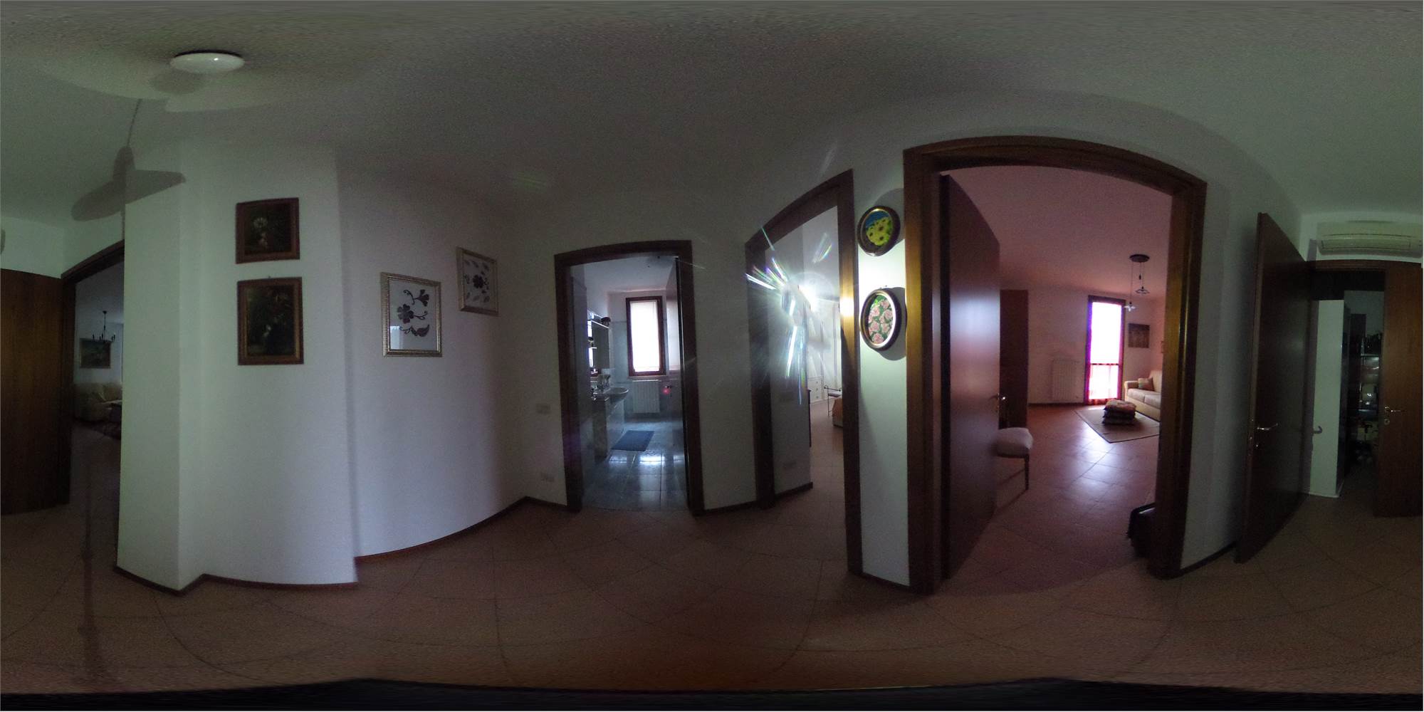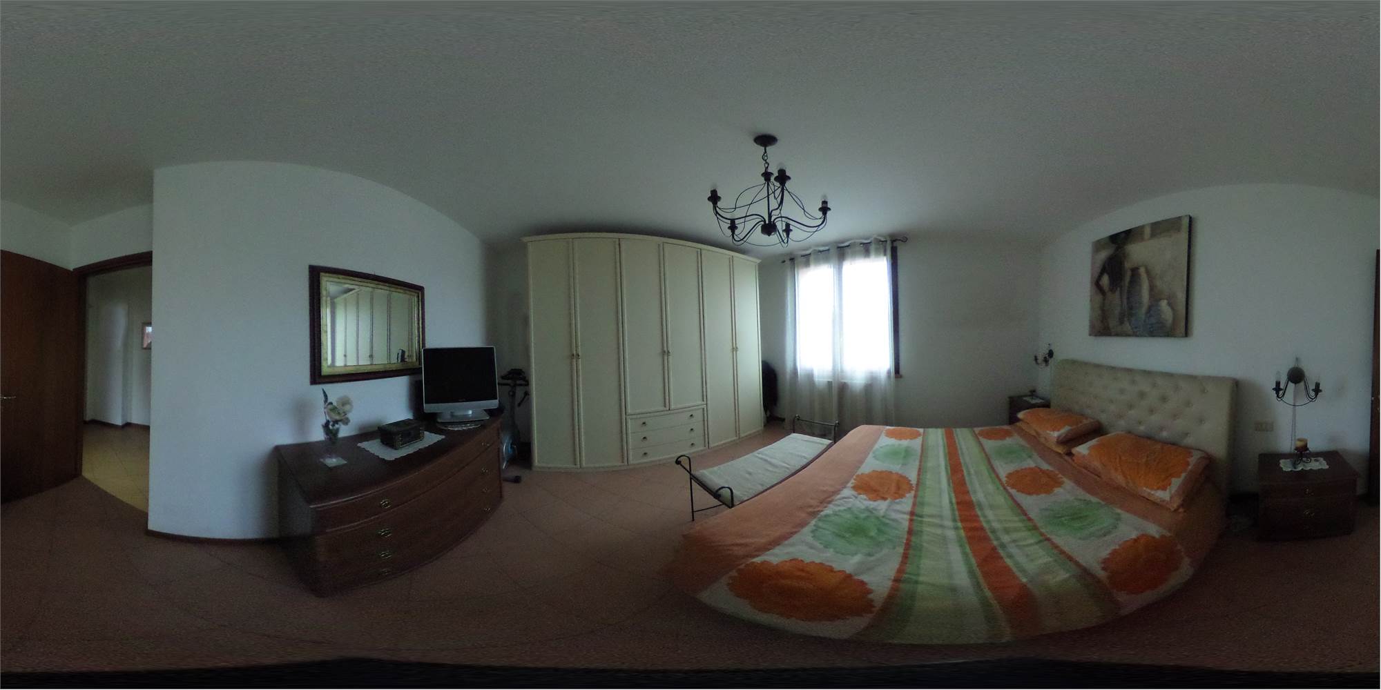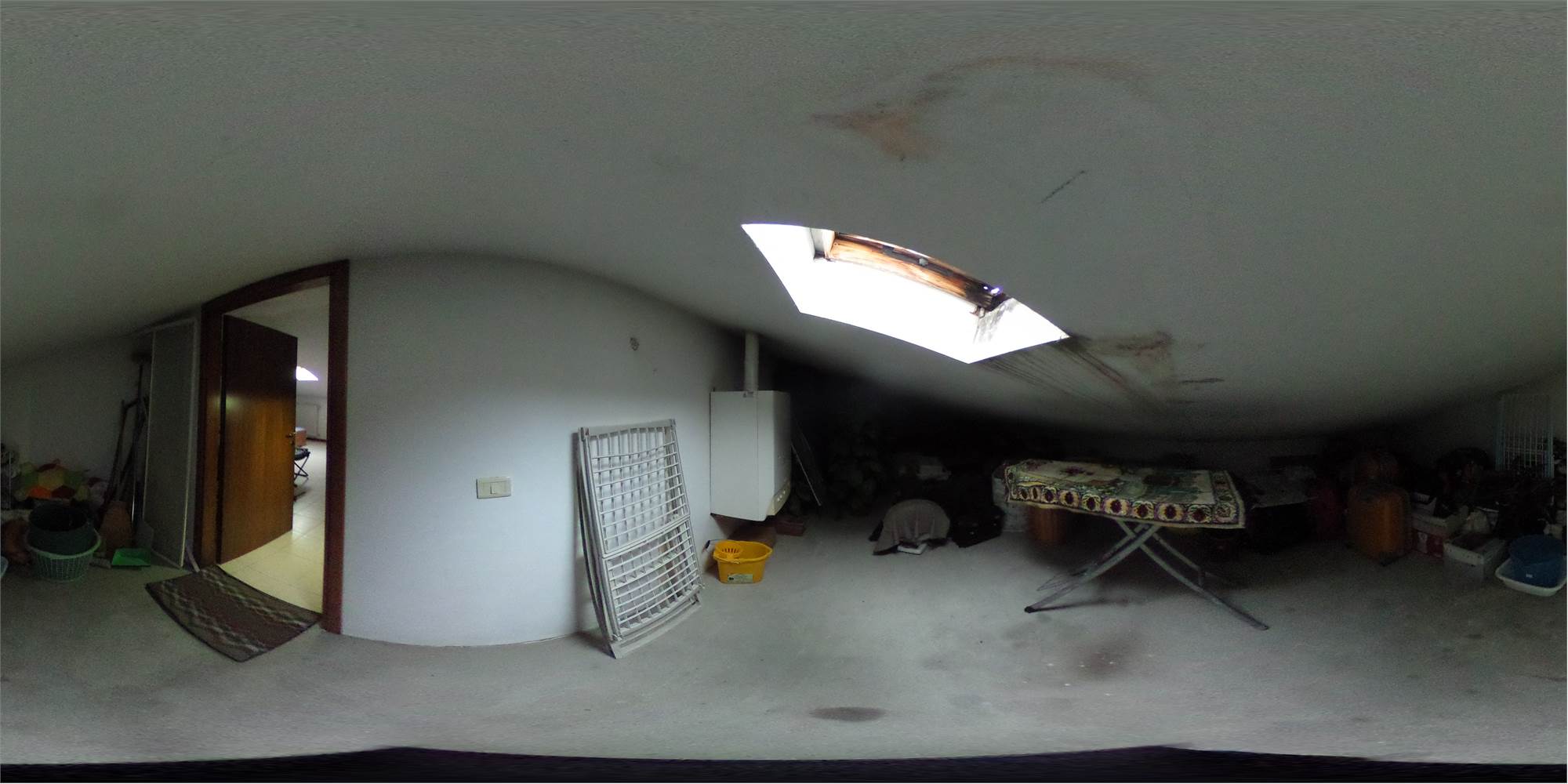 Piena proprietà di appartamento posto al secondo e terzo piano di fabbricato condominiale privo di ascensore, con annessa cantina ed autorimessa doppia in lunghezza di mq. 36 catastali al piano terra. L'appartamento, di circa mq. 156 di superficie commerciale parametrata, risulta costituito al secondo piano da ripostiglio, pranzo-soggiorno, cucina con balcone, disimpegno, altro ripostiglio, bagno, due camere da letto; al piano terzo da lavanderia e due vani sottotetto, collegati all'appartamento da scala interna a chiocciola in proprietà esclusiva.