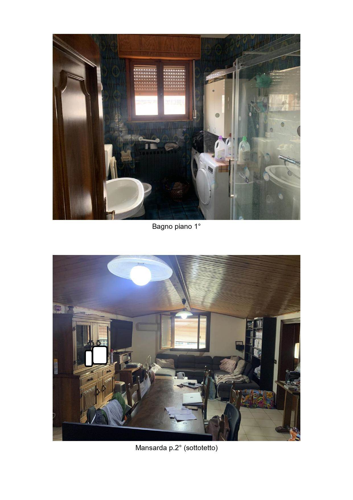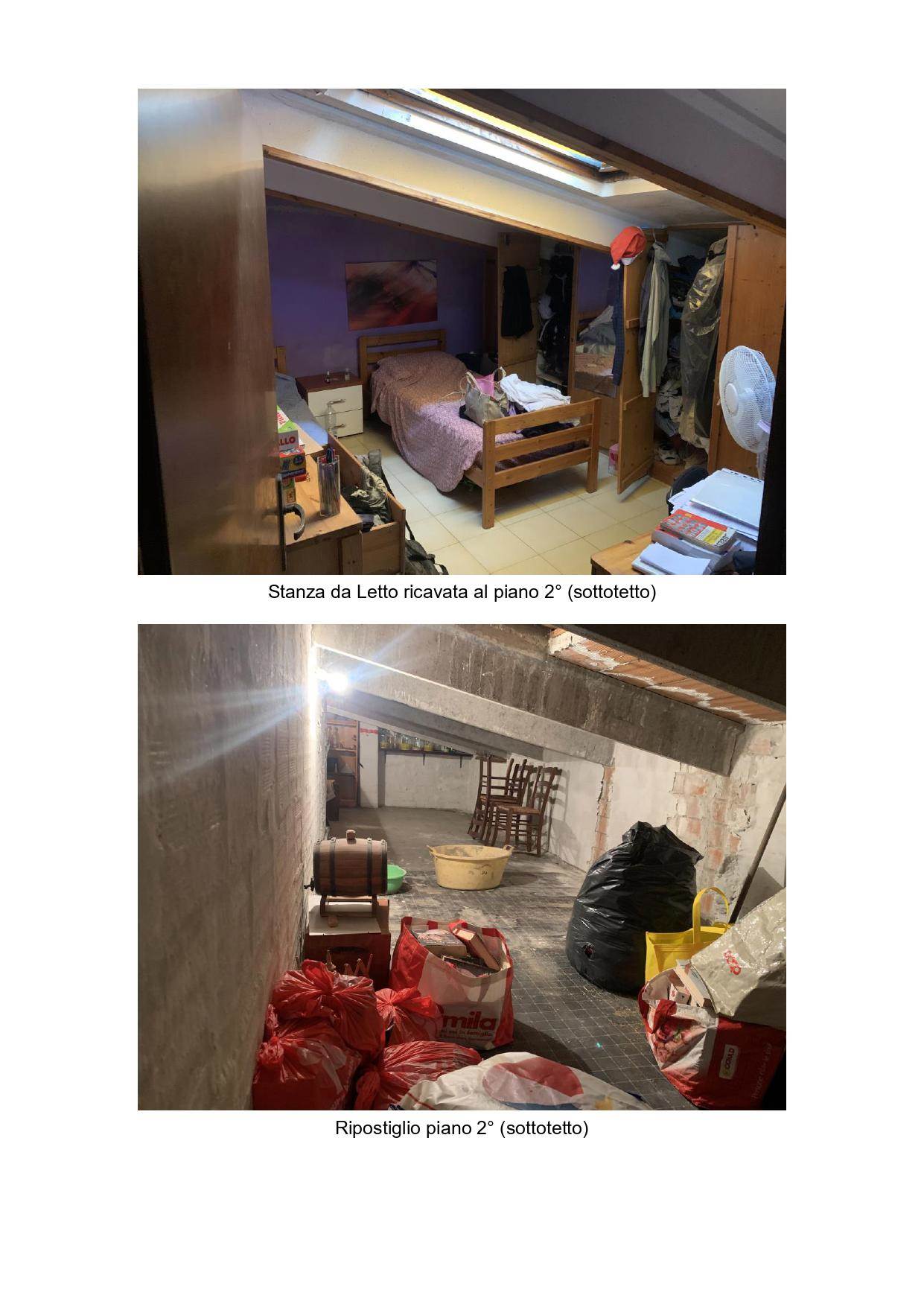 Piano secondo, h.max.m.2,50 – h.min.m.0,90 composto da: locale ad uso mansarda (h.media m.2.28), disimpegno, n.2 locali soffitta, bagno/lavanderia, n.2 locali ripostiglio, locale servizio.