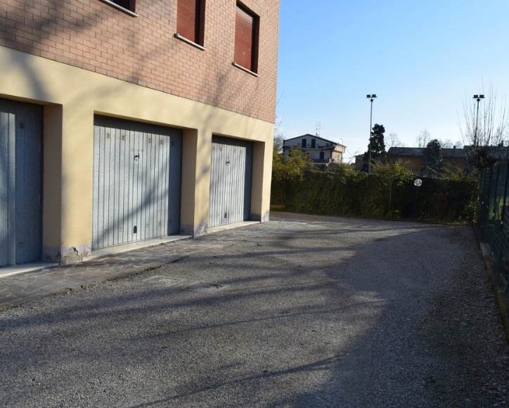 Appartamento al p.1 con due camere, un balcone e un'autorimessa al piano terra. Situato a Nonantola (MO), via Ivaldo Vaccari n.10