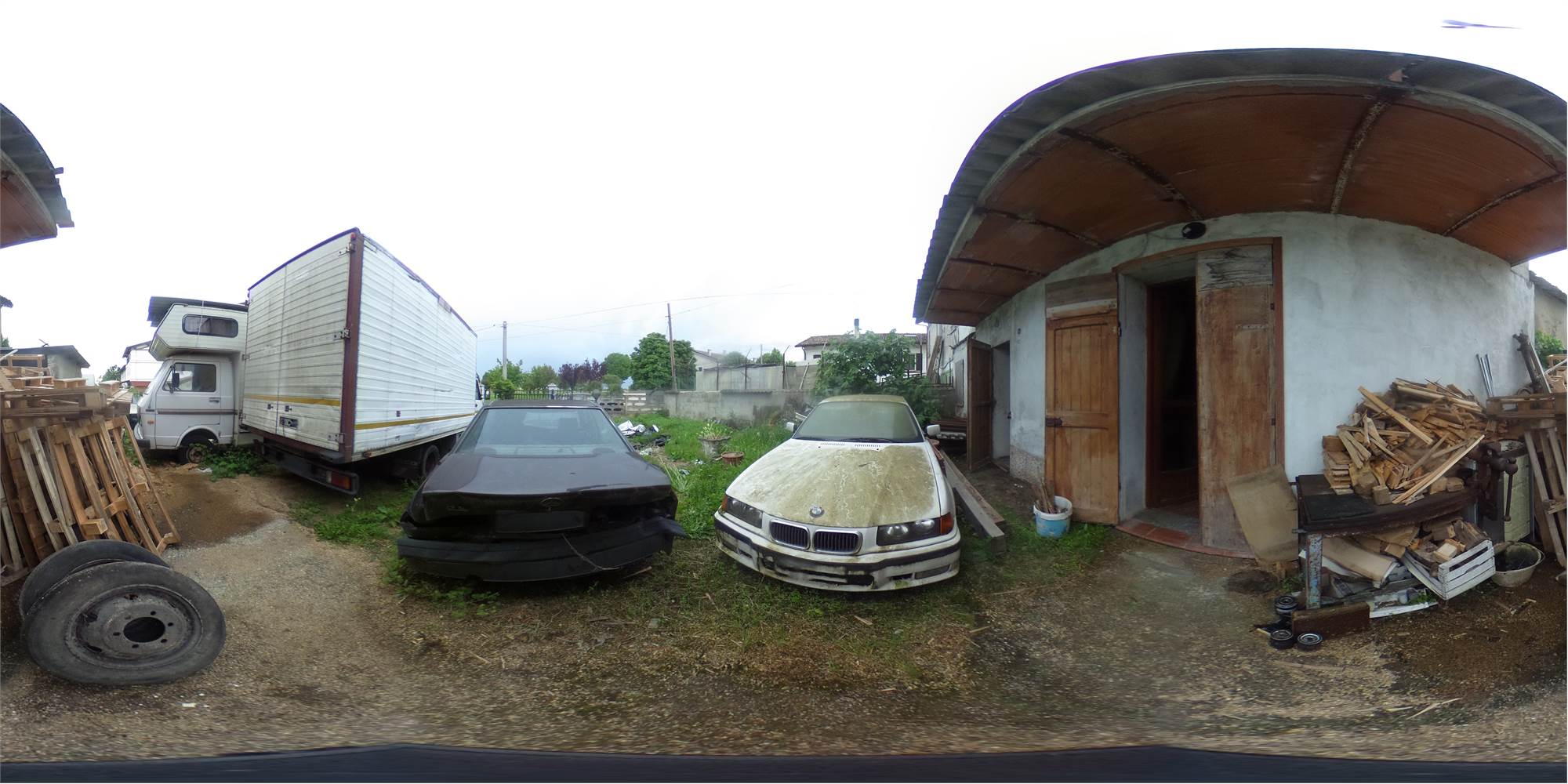Piena proprietà di casa monofamiliare a schiera, organizzata su tre livelli con annessa autorimessa e area cortiliva. L'immobile risulta costituito da soggiorno con scala di accesso ai piani superiori, due camere, wc, cucina con wc e disimpegno; al piano primo due camere, bagno e due locali a sgombero; sottotetto non abitabile.