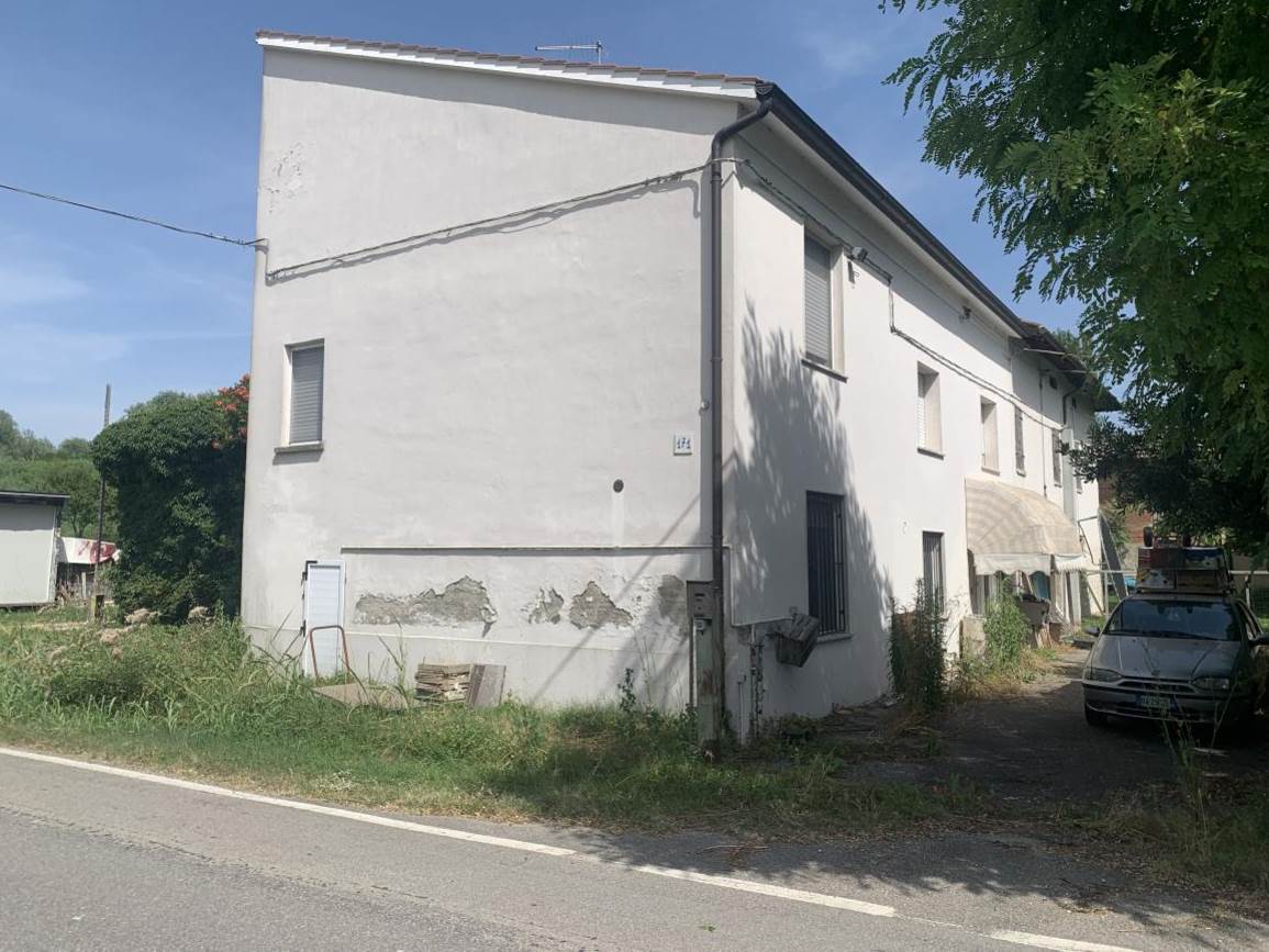 Fabbricato di pertinenza ad uso cantina/ripostiglio e box posto auto in lamiera ubicati nell'area cortiliva di pertinenza. Superfici commerciali: abitazione al p.T e 1 ca. mq.176,06; cantina- rip. ca. mq.31,36; soffitta ca. mq.64,20; autorimessa ca. mq.11; area cortiliva ca. mq. 210.