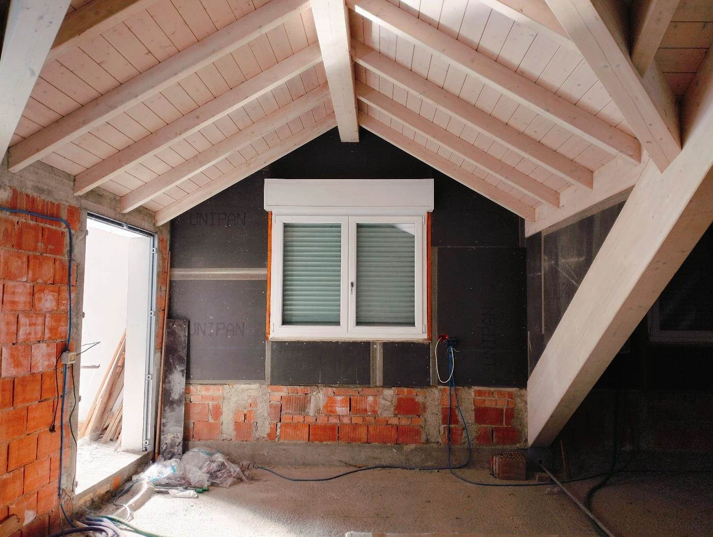 Piena proprietà su porzione di fabbricato ad uso civile abitazione, costituito da appartamento al piano secondo con soffitta al piano terzo e deposito di pertinenza al piano seminterrato.il fabbricato è composto da due piani fuori terra con soffitta, a destinazione prettamente residenziale. al primo piano si trovano due ambienti per piano adibiti ad uffici mentre al secondo piano si trovano due appartamenti per piano.il fabbricato è in corso di costruzione.
