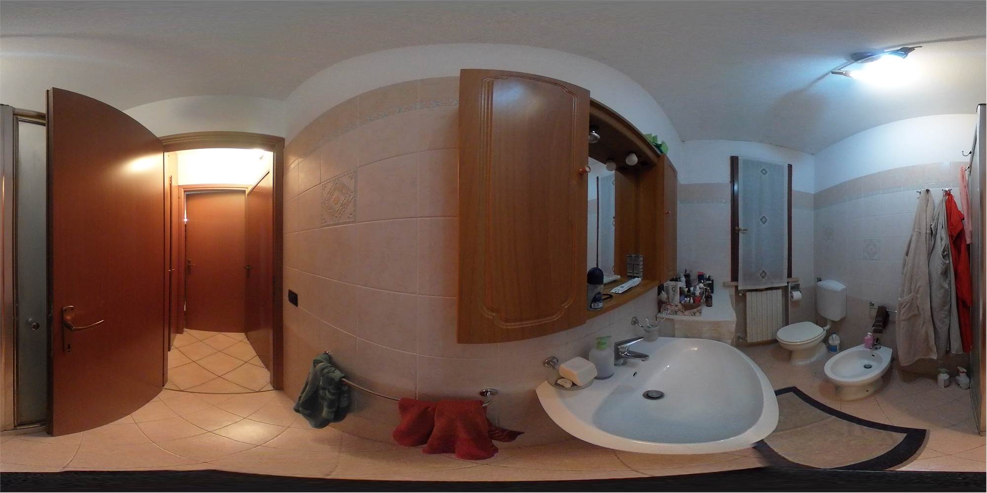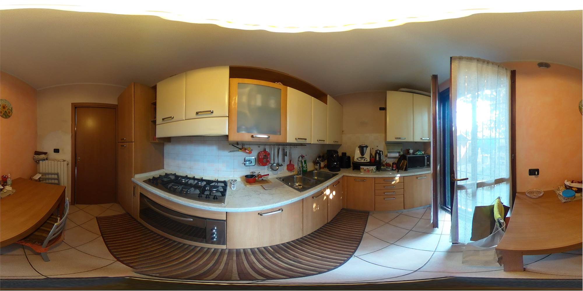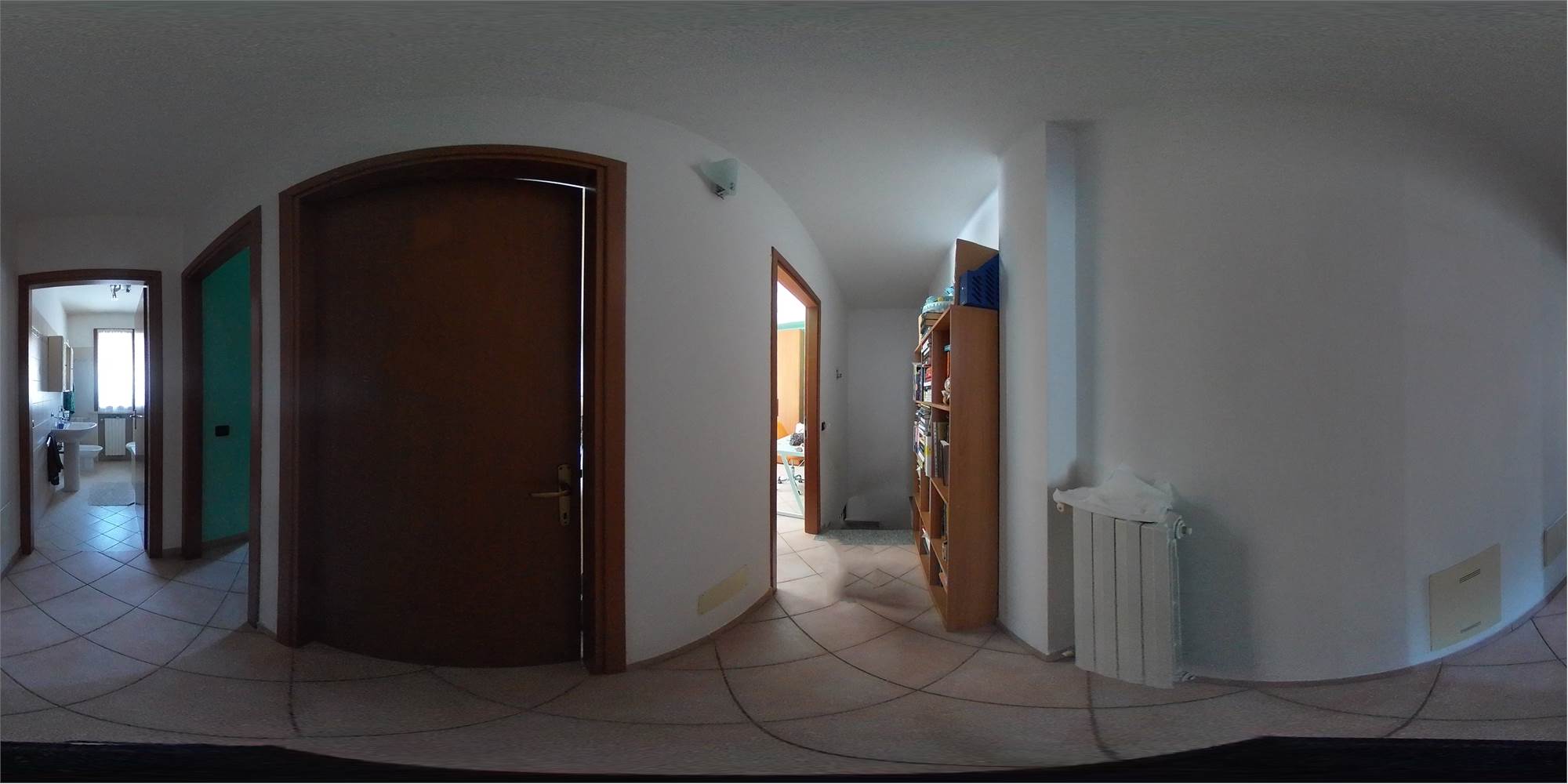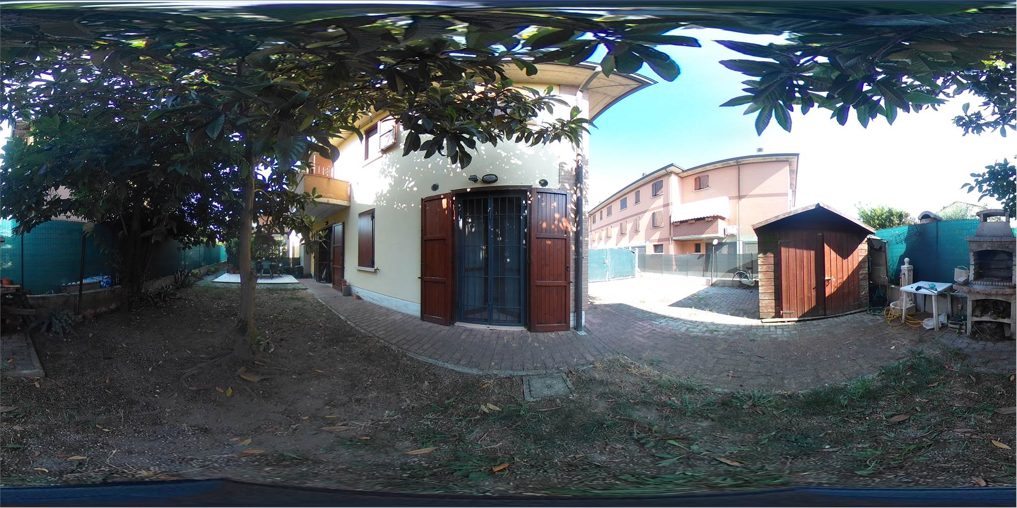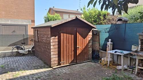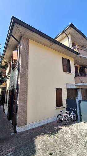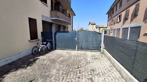 Piena proprietà di appartamento sviluppato su due piani collegati tra loro da scala interna, con autorimessa e area cortiliva esclusiva, posto in fabbricato condominiale. L'appartamento risulta composto al piano terreno da locale destinato a cucina e uno a soggiorno (urbanisticamente locali destinati a stenditoio e centrale termica), bagno e disimpegno; al primo piano due camere da letto matrimoniali, ripostiglio finestrato utilizzato a camera, bagno e disimpegno. Superficie commerciale appartamento pari a mq. 91,41 circa.