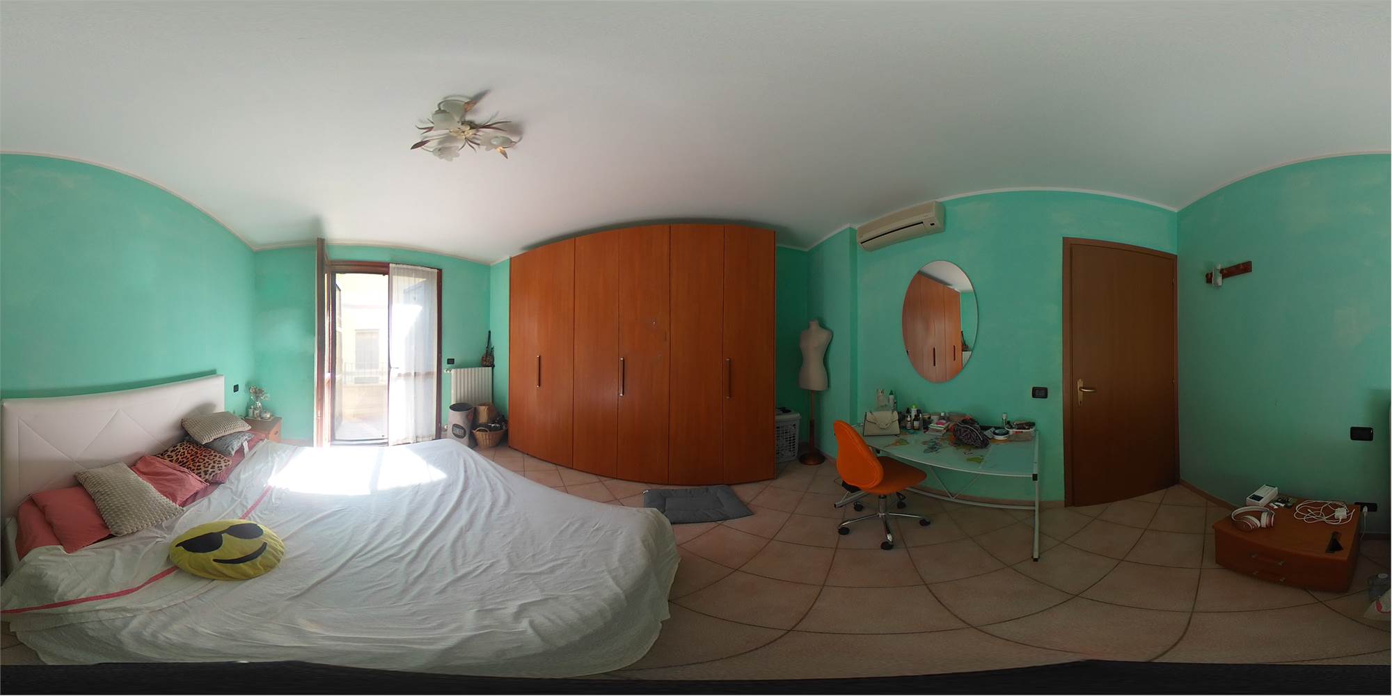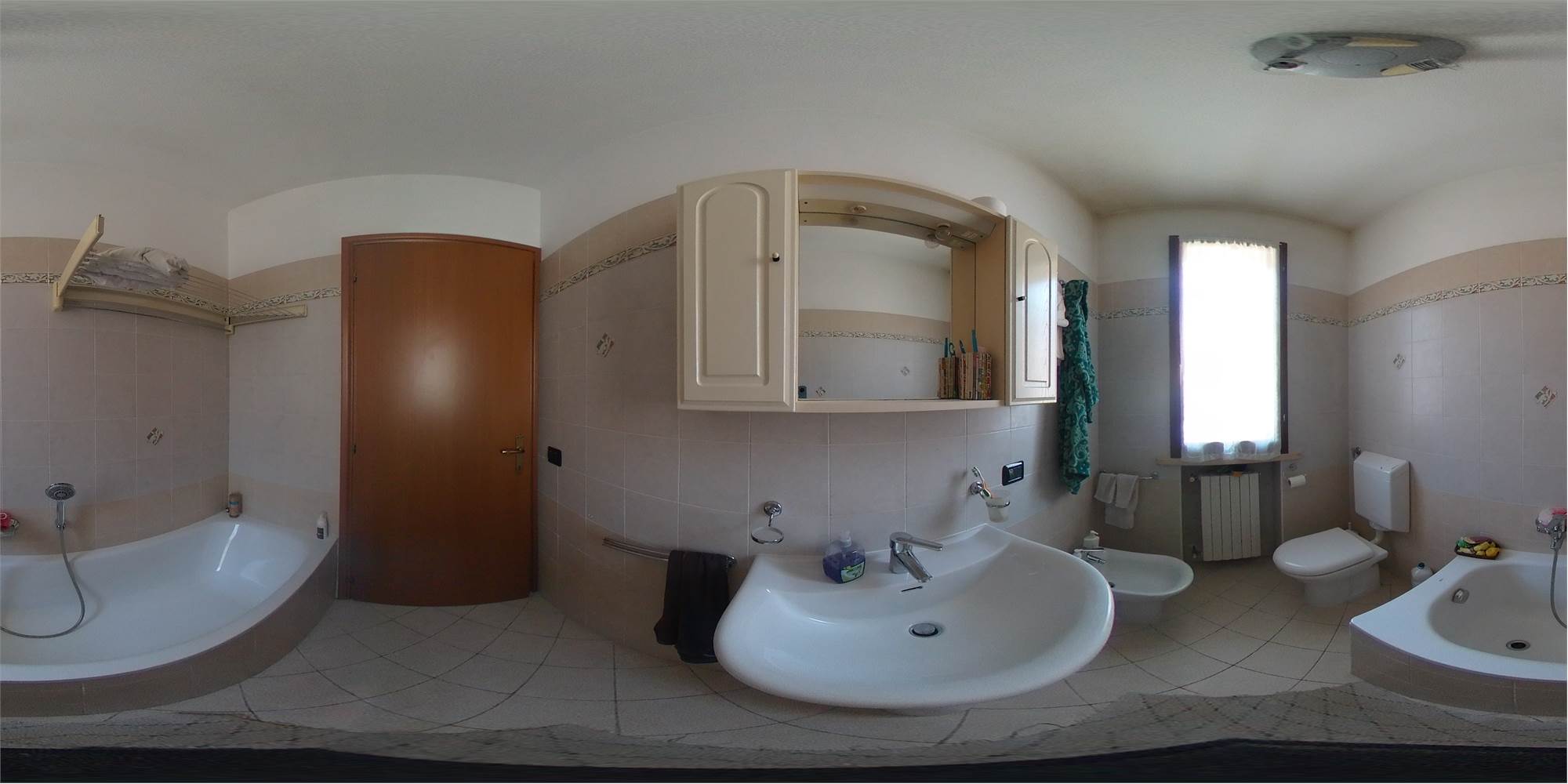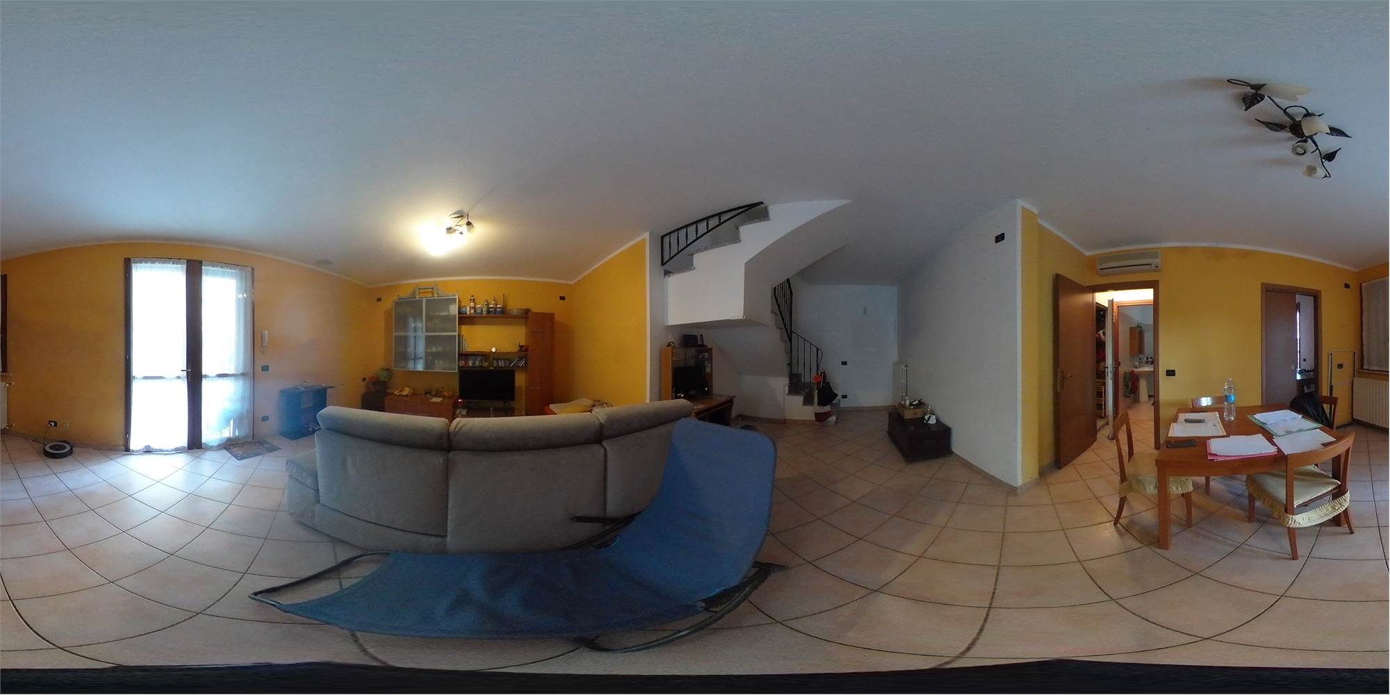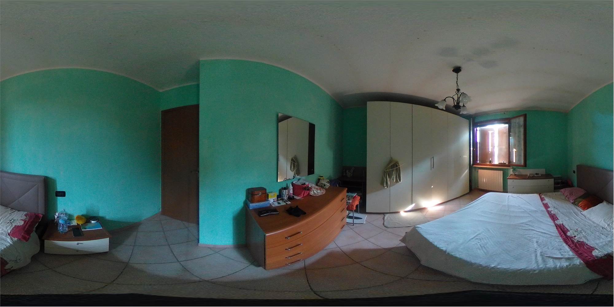 Piena proprietà di appartamento sviluppato su due piani collegati tra loro da scala interna, con autorimessa e area cortiliva esclusiva, posto in fabbricato condominiale. L'appartamento risulta composto al piano terreno da locale destinato a cucina e uno a soggiorno (urbanisticamente locali destinati a stenditoio e centrale termica), bagno e disimpegno; al primo piano due camere da letto matrimoniali, ripostiglio finestrato utilizzato a camera, bagno e disimpegno. Superficie commerciale appartamento pari a mq. 91,41 circa.