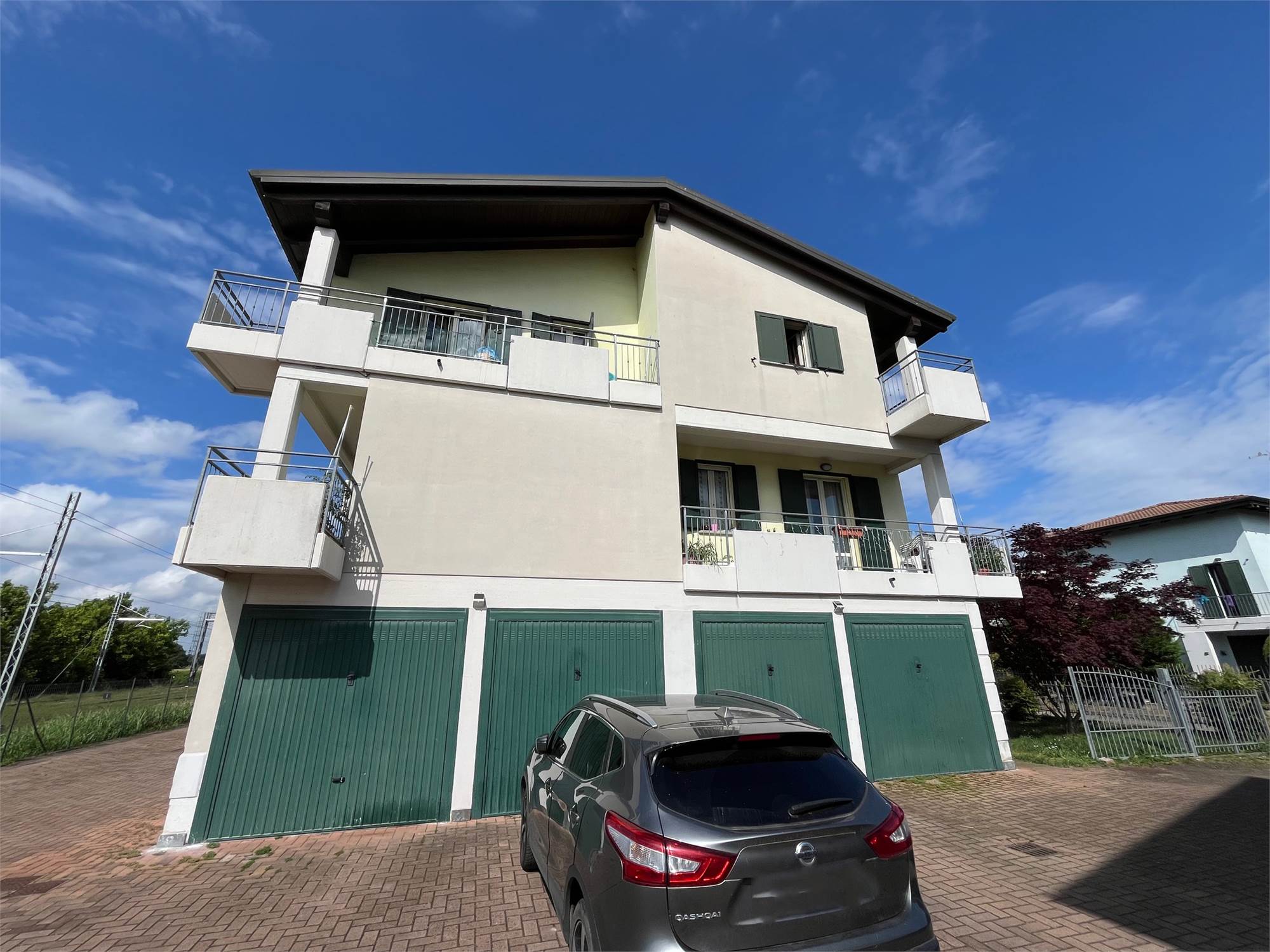 Piena proprietà di appatamento posto al secondo piano di edificio condominiale, composto da soggiorno con angolo cottura, due balconi, disimpegno, due camere da letto e bagno; al piano terra sono presenti tre cantine e garage accessibile sia dalla cantina sub. 8 che dall'area cortiliva comune. Superficie commerciale pari a mq. 95,45 escluso garage.