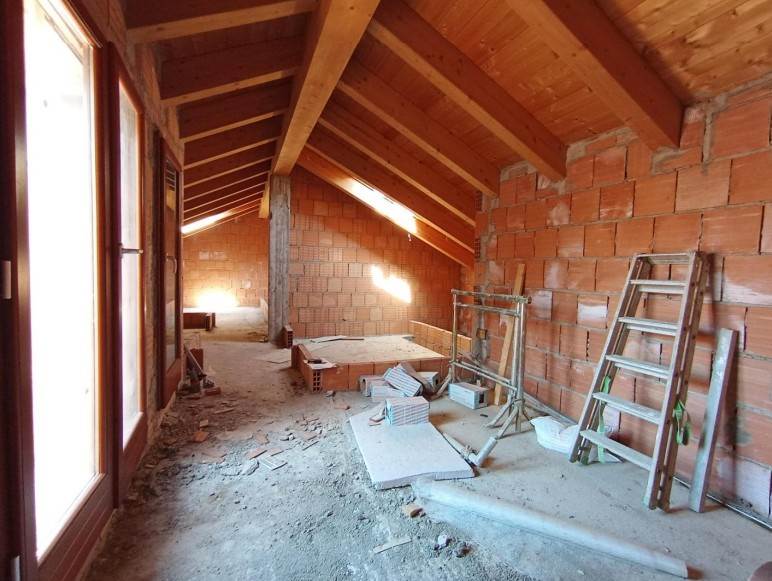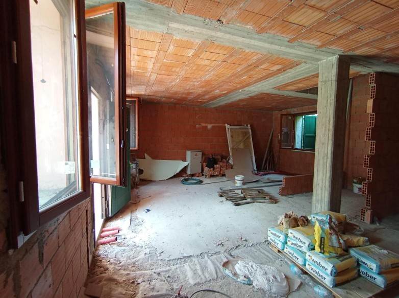 Piena Proprietà di Unità Immobiliare in corso di costruzione disposta su due livelli piano terra e sottotetto, attualmente allo stato grezzo, costituita così come da Progetto approvato da un Soggiorno-Pranzo con angolo Cottura una Camera da Letto a tipologia Matrimoniale, un Bagno disimpegnato e scala di accesso al piano primo sottotetto con lavanderia e terrazzo in loggia.